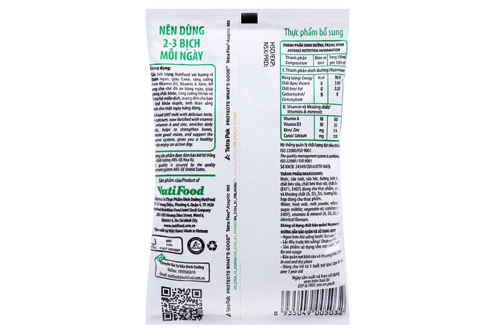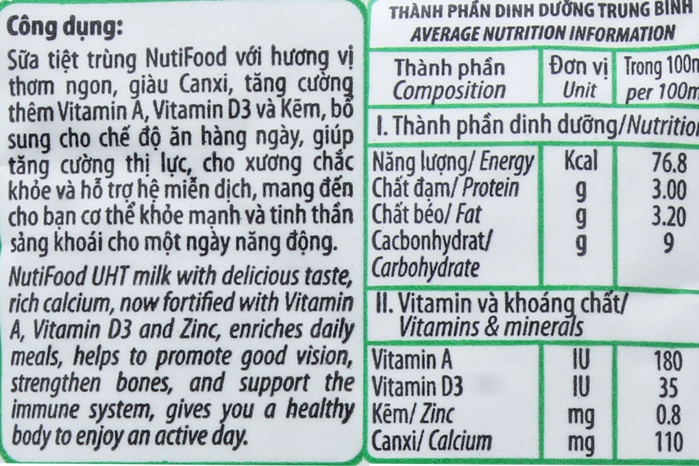 - Sữa tiệt trùng Nuvita giúp cung cấp đầy đủ hệ vi chất thiết yếu: protein, canxi, phốt pho, vitamin A, D, kẽm, tiền tố DHA, ARA, lysin… giúp trẻ phát triển chiều cao tối đa, trí não phát triển hoàn thiện và cho đôi mắt luôn sáng khỏe.